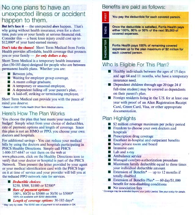 To Immediately Down Load The Temporary Health Insurance Form - Click Here